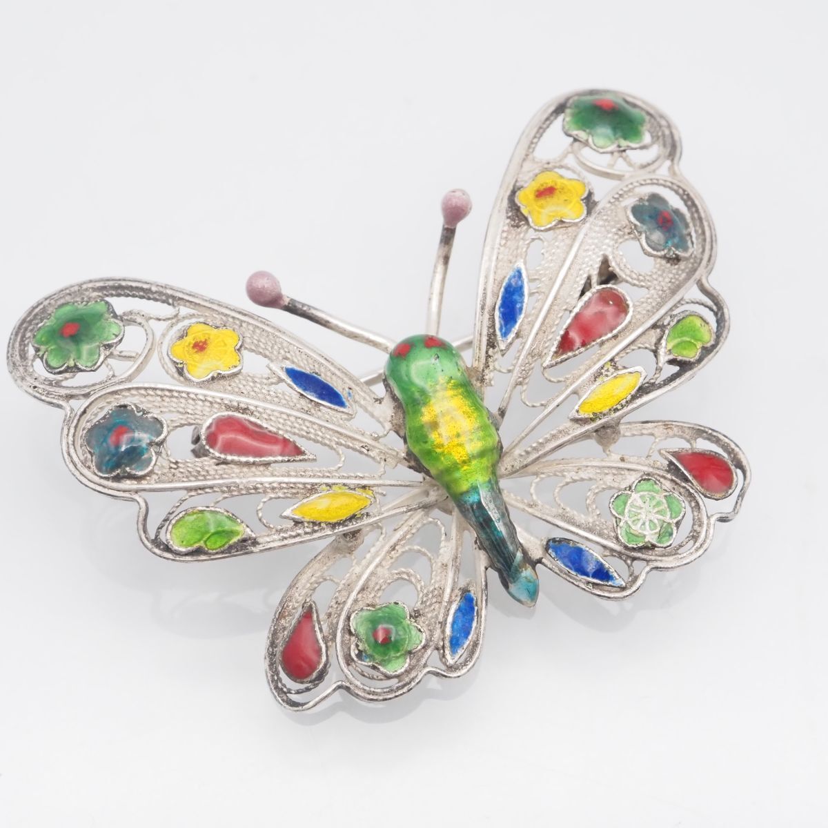> H440 七宝 SILVER刻印 ブローチ フィリグリー 銀線細工 蝶 バタフライ マルチカラー デザイン シルバー ヴィンテージ
