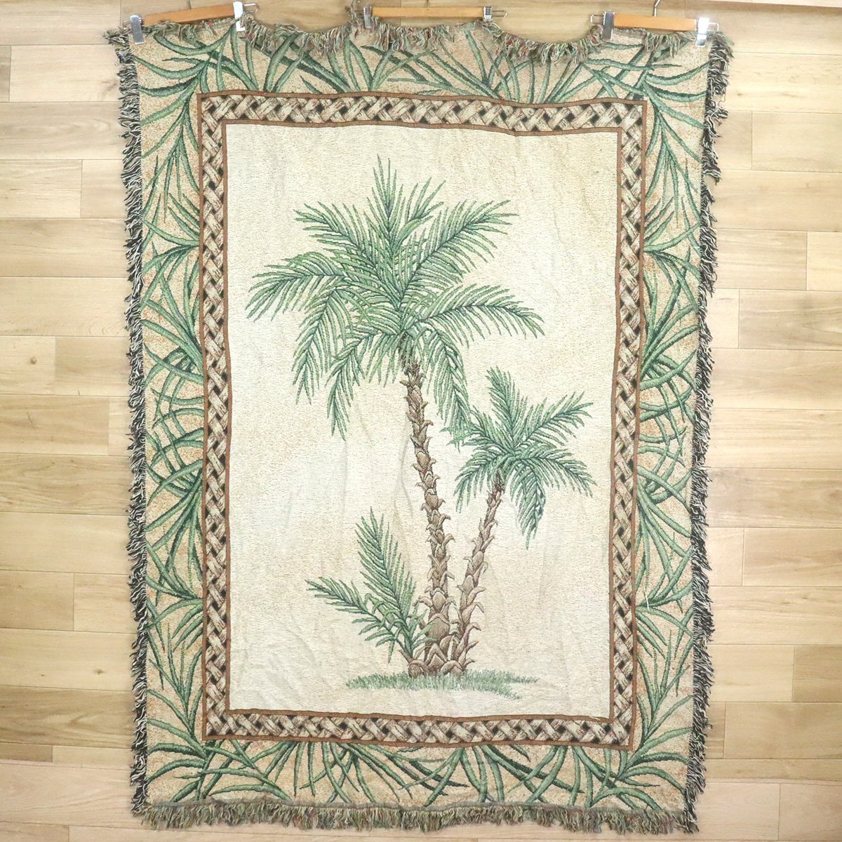 > M11-5 I/D10.23-6 USA製 ヤシの木 ボタニカル柄 植物 南国 ラグ マット カーペット ブランケット タペストリー インテリア雑貨