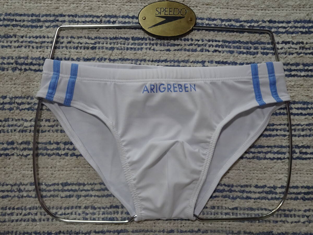 - 348 L ARIGREBEN スイムビキニパンツ SizeL ホワイト×サイド サックス2本ライン 新品未使用