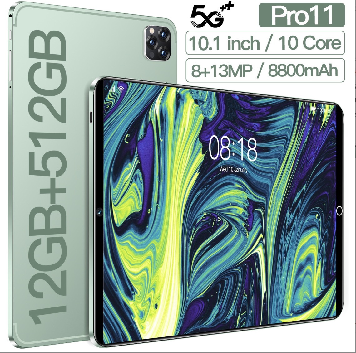 - タブレット 12+512GB 10インチ Android Wi-Fiモデル 通話対応 IPS液晶 ネット授業 コスパ最高 simフリー SDカード 在宅勤務グリーン