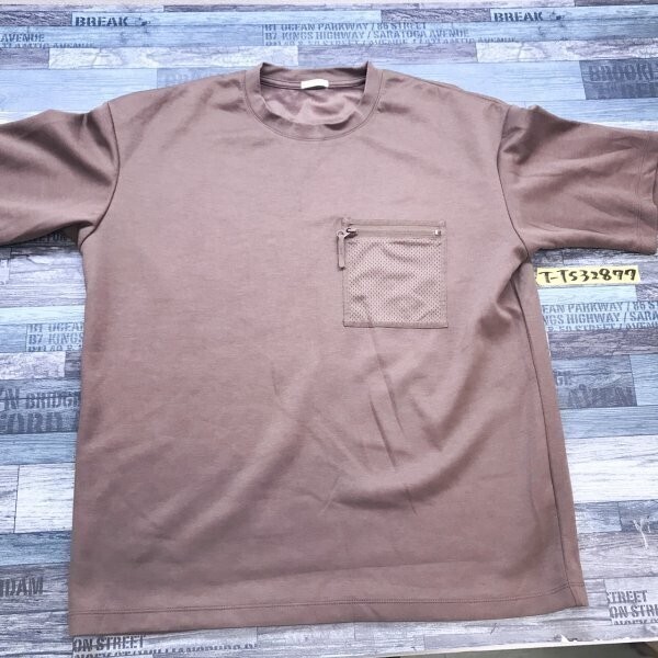 > GU ジーユー メンズ やや厚手 胸ポケット 半袖Tシャツ 大きいサイズ XL ブラウン