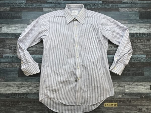 - courreges クレージュ メンズ ストライプ ノーアイロン 長袖シャツ 40-82 白水色