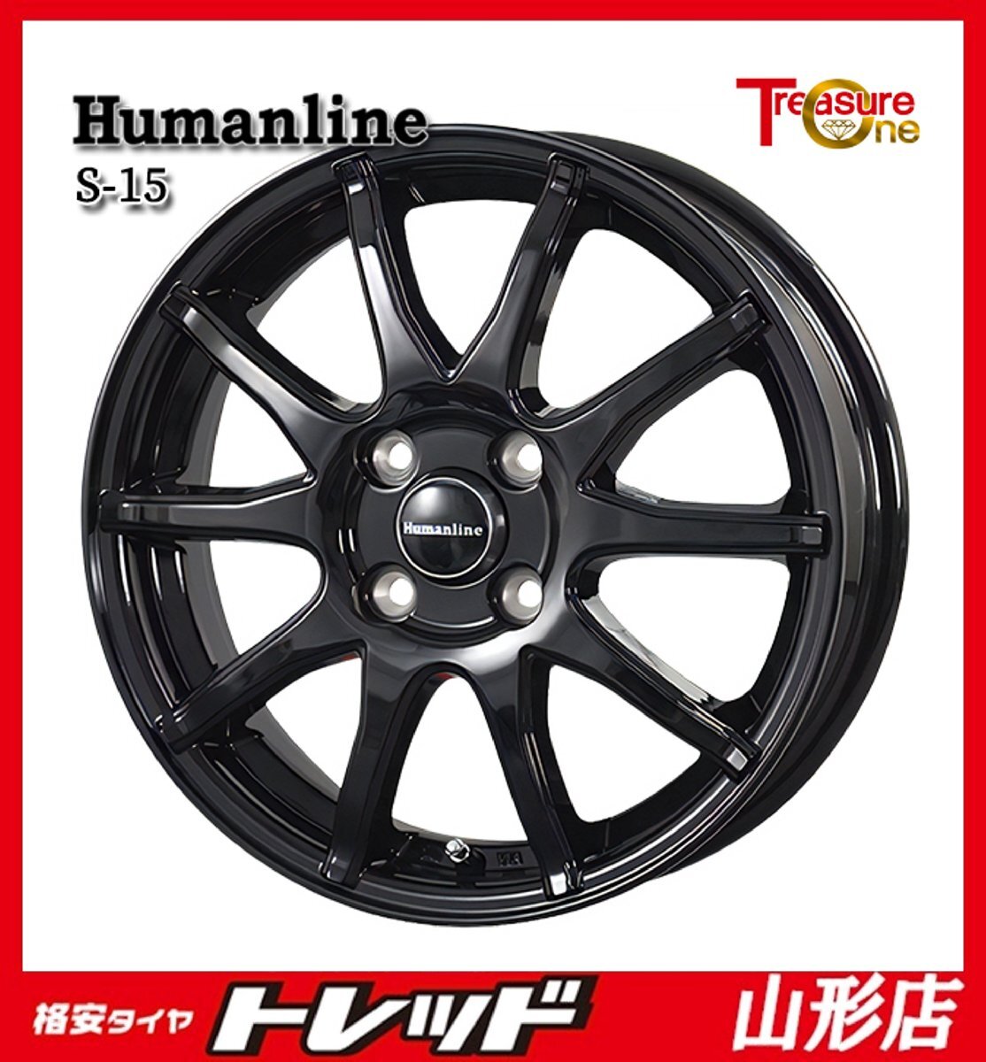 > 山形店 新品 アルミホイール 4本セット ヒューマンライン S-15 14インチ 5.5J PCD100 4H +43 ブラック ノート デミオ スイフト
