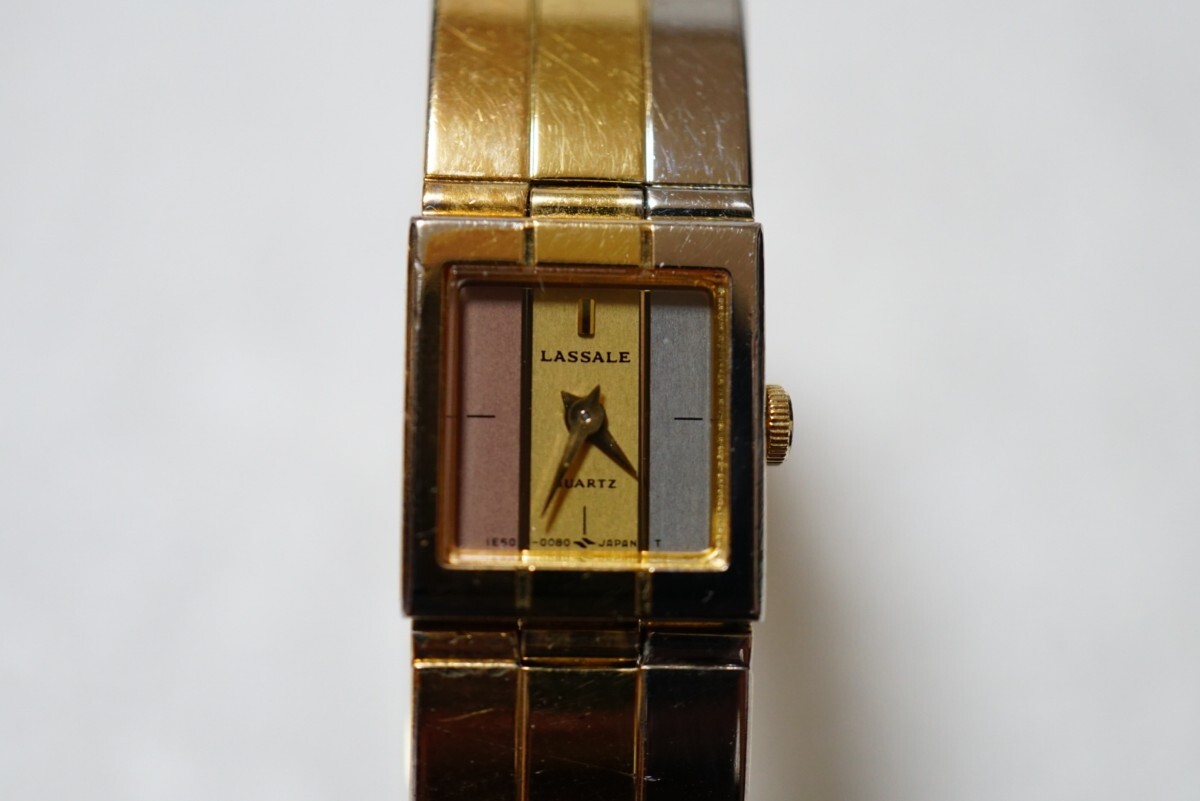 - F2211 SEIKO LASSALE/ラサール ゴールドカラー レディース 腕時計 バングル 腕輪 アクセサリー ヴィンテージ ブランド クォーツ 不動品