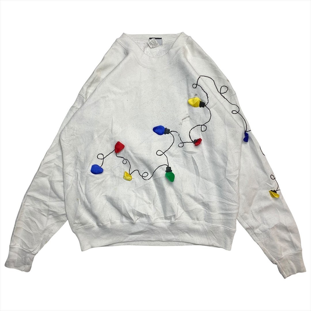 - Vintage 80s-90s Lee リー カラフル ホリデーライト 装飾デザイン スウェット トレーナー レディース XL ホワイト 古着 USA製 ヴィンテージ