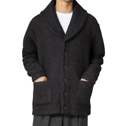 > AUBERGE/オーベルジュ/COOKE/クック/ショールカラー カシミヤフリースカーディガン/フロントポケット/ボタンフロント/丸襟/チャコール/42