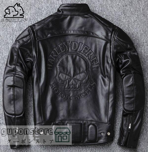 - 特売!本革S~5XL 新品牛革レザー刺繍 バイクジャケット 裏地着脱可 防風 通気 ツーリング革ジャンライダース