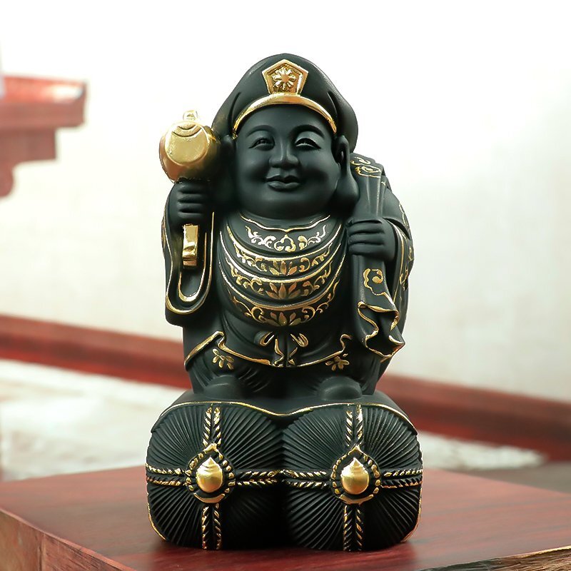 - 送料無料! 日本大黒天 七福神 仏門護法 神七福神 財神 仏像 奉納 仏護神仏 摩訶迦羅 細密彫刻24K真金貼付 木彫 小葉黄楊木zhzx280