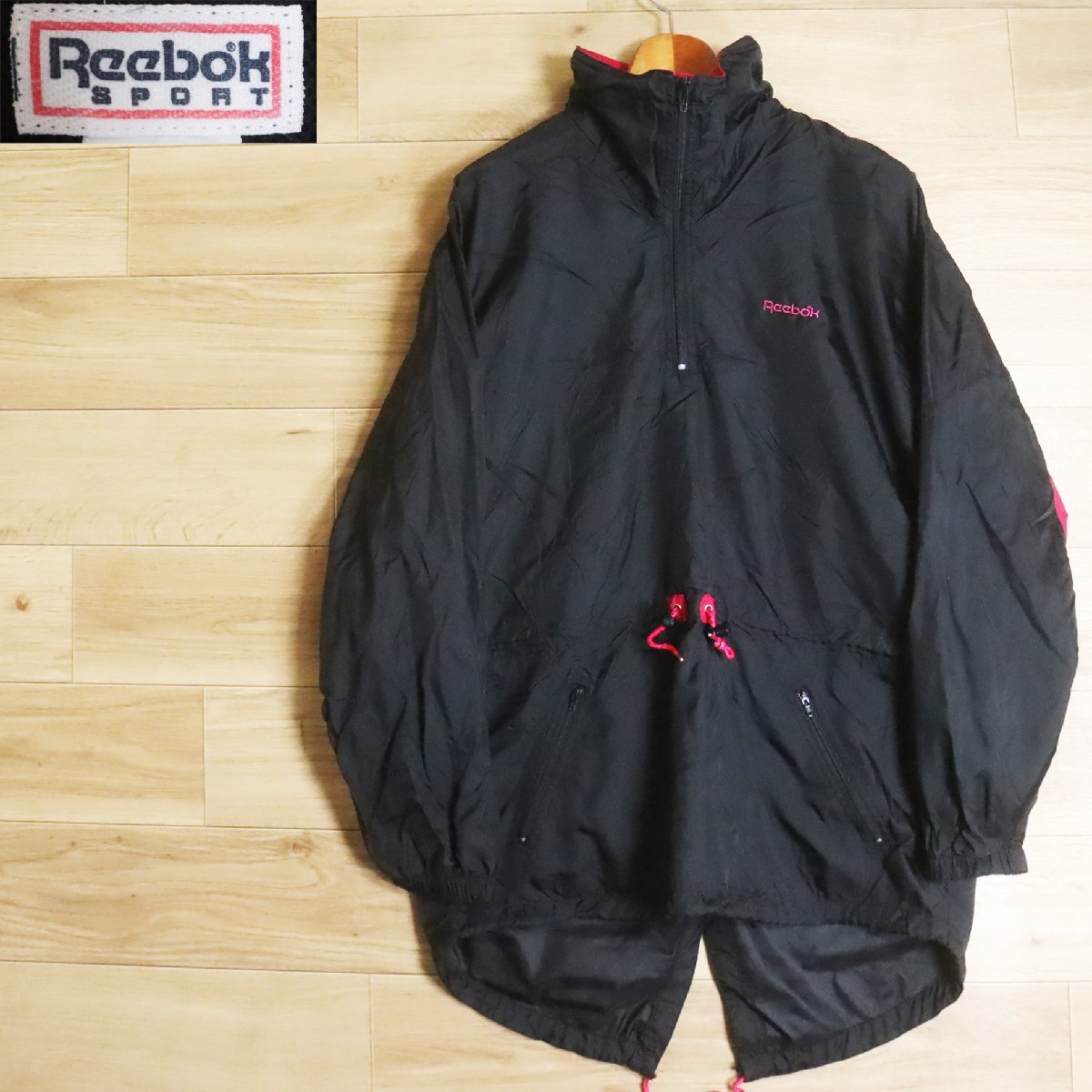 > N4O/R4.30-1 Reebok リーボック ハーフジップ ナイロンジャケット フィッシュテール ウィンドブレーカー ジャンパー ブルゾン S