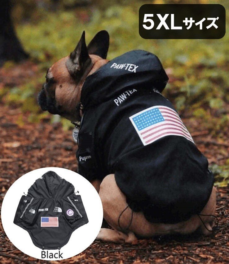- 犬 レインコート ブラック 5XLサイズ カッパ ウィンドブレーカー 犬用 大型犬 反射 散歩 防水 撥水 雨具 ポンチョ 梅雨