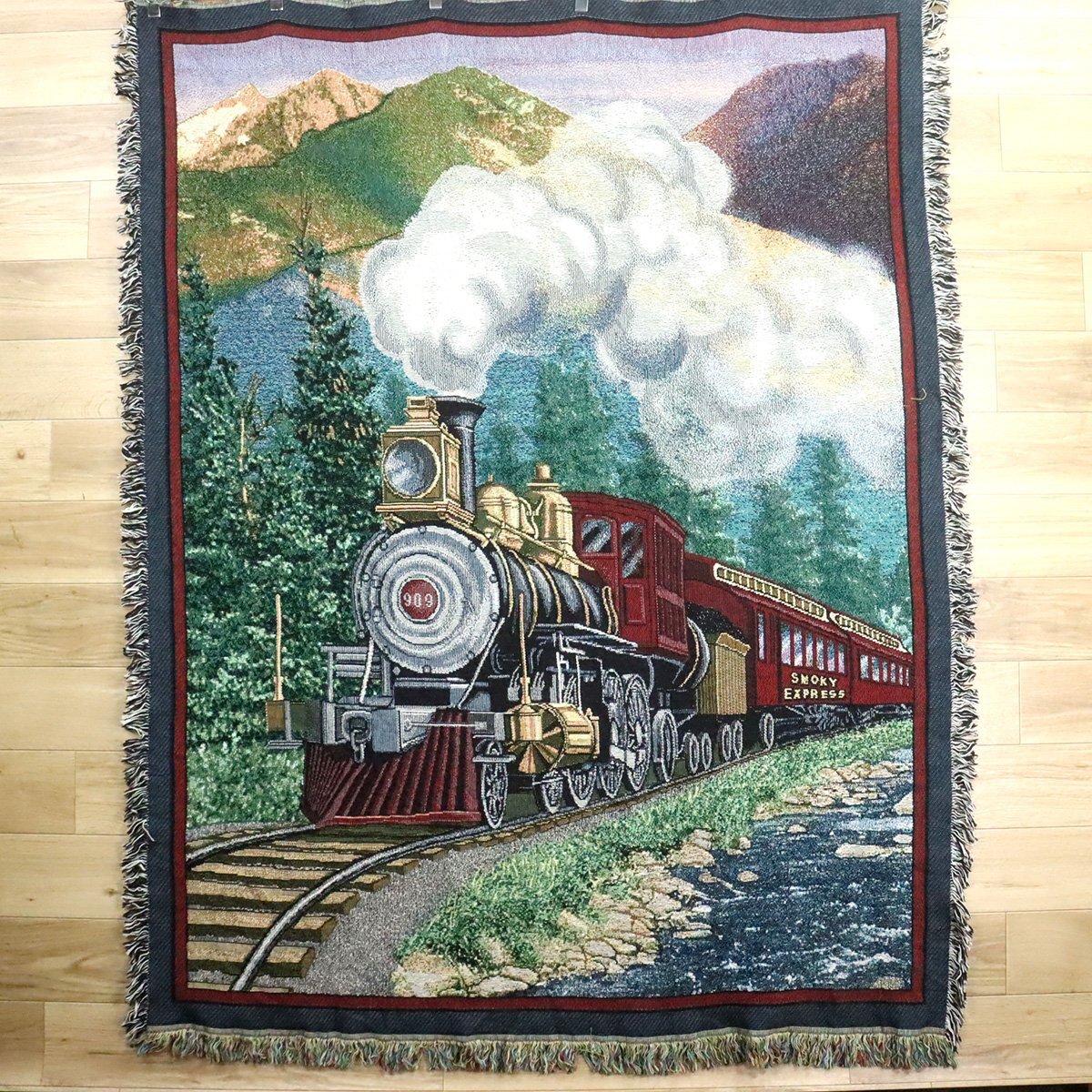 - C5-8 I/I11.4-1 USA製 SMOKY EXPRESS 蒸気機関車 風景画 ラグ マット カーペット ブランケット タペストリー インテリア雑貨