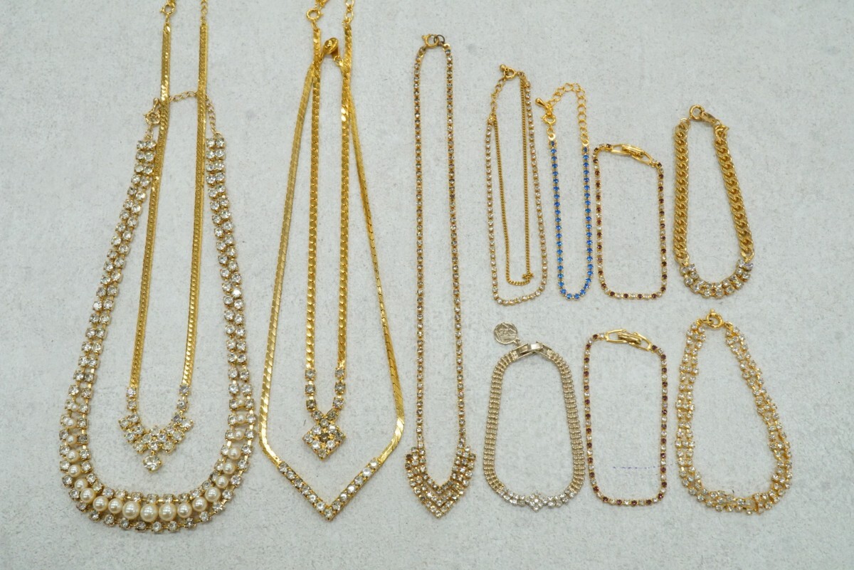 - C817 海外製含む ゴールドカラー ラインストーンなど ヴィンテージ ネックレス ブレスレット 12点 アクセサリー 大量 まとめて おまとめ