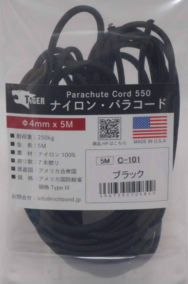 - [新品] パラコード 4mm x 5M ブラック アウトドア キャンプ 災害用 防災用 非常用 物干しロープ テントロープ 釣り ハンドメイド 手芸用 紐