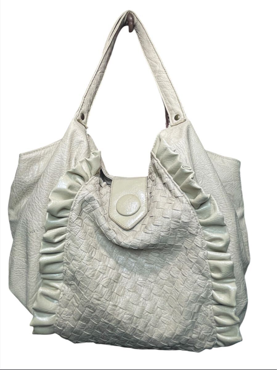 - フリル&編み込みデザイン ホボバッグ ハンドバッグ