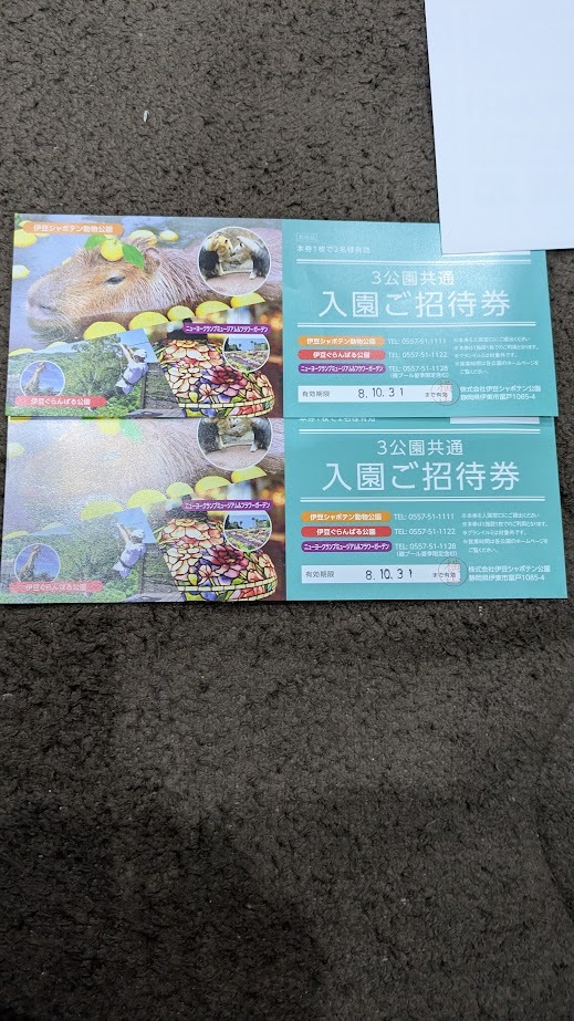 - 【3公園共通】【2名迄可】伊豆シャボテン動物公園・伊豆ぐらんぱる公園・ニューヨークランプミュージアム&フラワーガーデン入園ご招待券