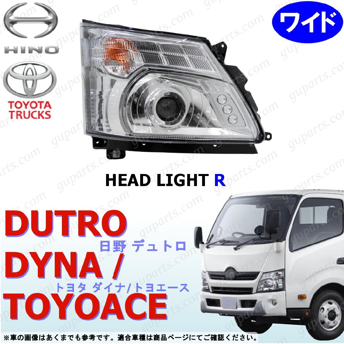 - デュトロ ダイナ トヨエース ワイド LED 右 ヘッド ライト プロジェクター エアループ トヨタ 日野