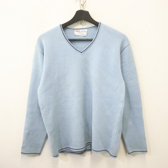 > C865 70sビンテージ ali sport knittwear Vネック ウールニットセーター■1970年代製 約Sサイズ ブルー アメカジ ストリート 古着 古着卸