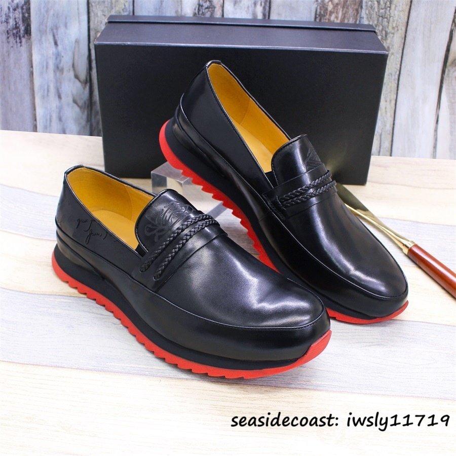- 定価9万超◆最高級 ローファー メンズ 本革レザーシューズ ビジネスシューズ 牛革革靴 職人手作り 紳士靴 軽量 スリッポン ブラック 24.5cm