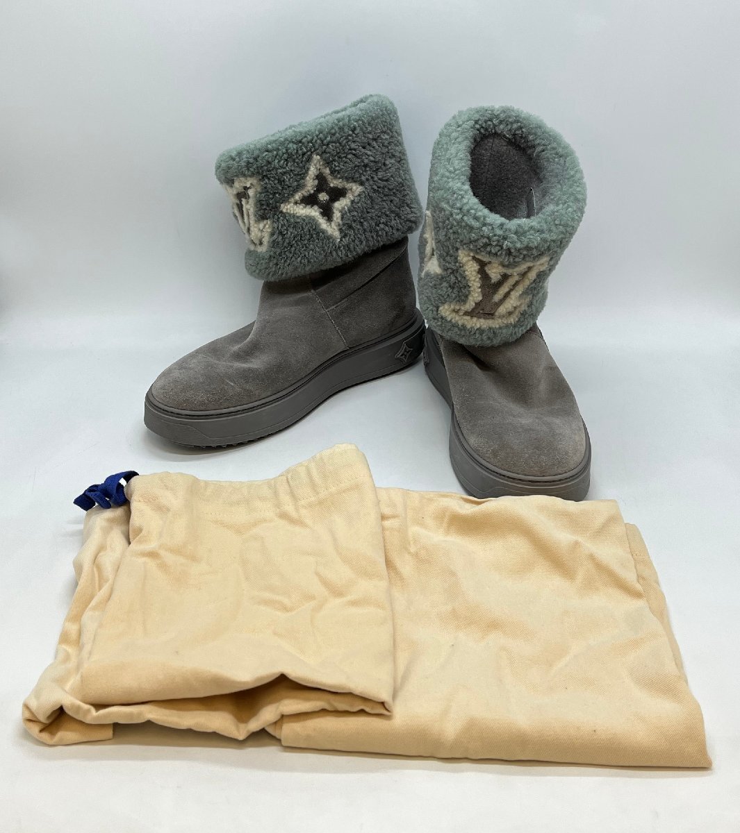 - LOUIS VUITTON ルイヴィトン スノードロップライン ムートンブーツ TC0262 38N グレー系 ☆良品☆[841-0607-2E3]