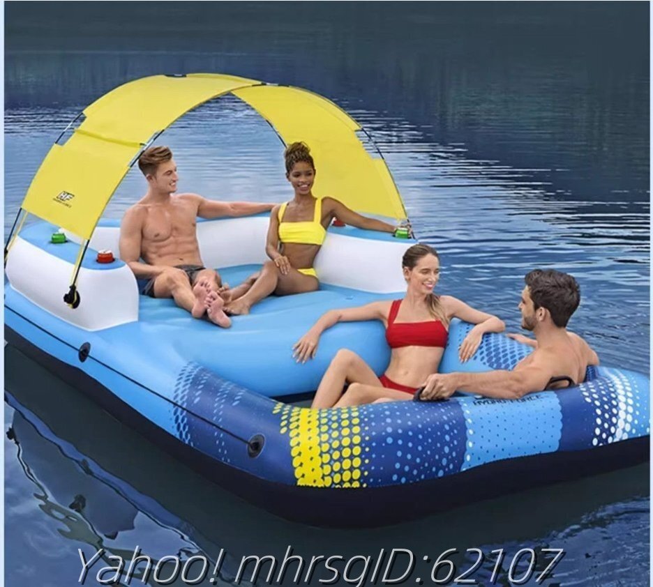 - 水上充気浮床多人用大型浮排浮板浮き椅子日よけ浮島水泳