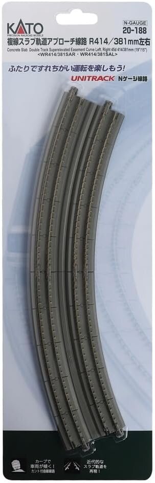 - KATO Nゲージ 複線スラブ軌道アプローチ線路R414/381-22.5° 左右各1本入 #20-188