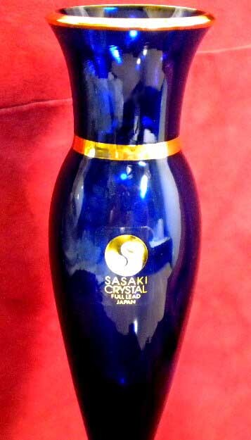 > 売切 廃盤品 ササキクリスタル 金彩 コバルトブルー 1輪差し 1式 未使用品 箱無 、纏購入特典有 寸法φ上37中36下64×H208mm、重量135g