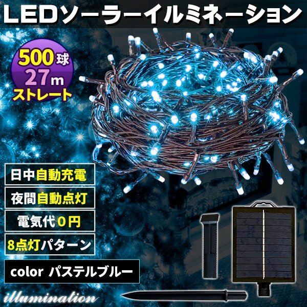 - ソーラー イルミネーション 屋外 クリスマス ストレート 屋外用 イルミネーションライト 500球 パステルブルー