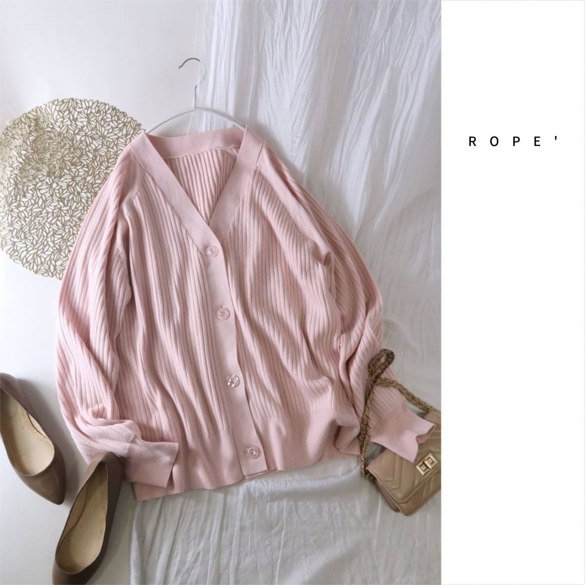 - ロペ ROPE'☆洗える ウール混 ラグランリブVネック カーディガン Lサイズ☆M-B 6346