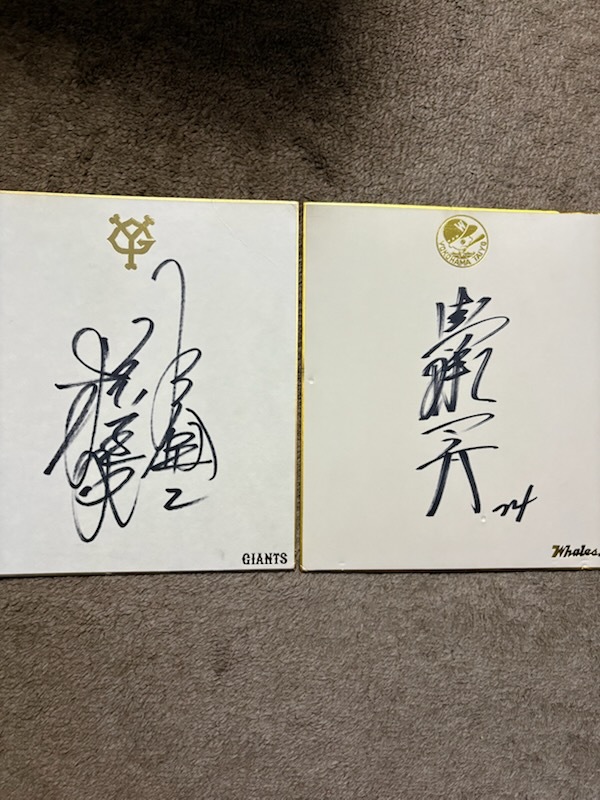 - 昭和レトロ プロ野球 サイン 巨人 松本匡史 大洋 遠藤一彦 2枚セット 球団マーク入り色紙