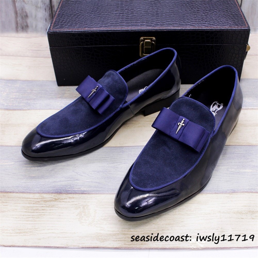 - 最高級★ビジネスシューズ メンズ ローファー スリッポン本革 レザーシューズ 職人手作り ドレスシューズ紳士靴 牛革 革靴 ネイビー 27.5cm