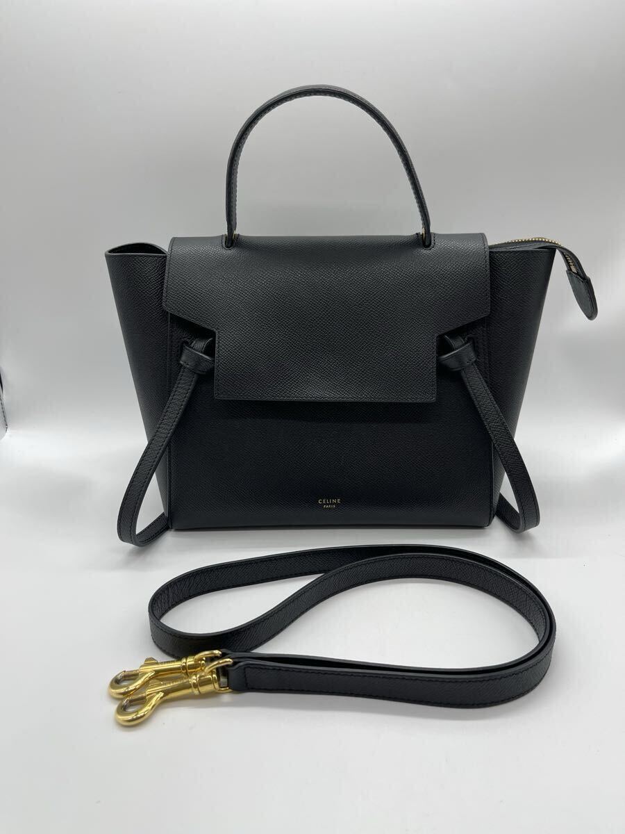 - 【1円スタート】CELINE セリーヌ ベルトバッグ ミディアム ブラック ゴールド金具 美品 グレインドカーフレザー
