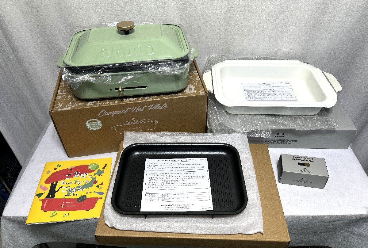 > ▽BRUNO ブルーノ コンパクトホットプレート グラスグリーン 4点セット 未使用に近い美品▽012700