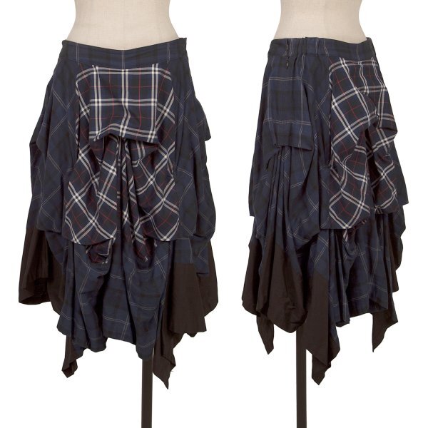 - アツロウタヤマA/T チェックパッチワークタックスカート 青 紺38 【レディース】