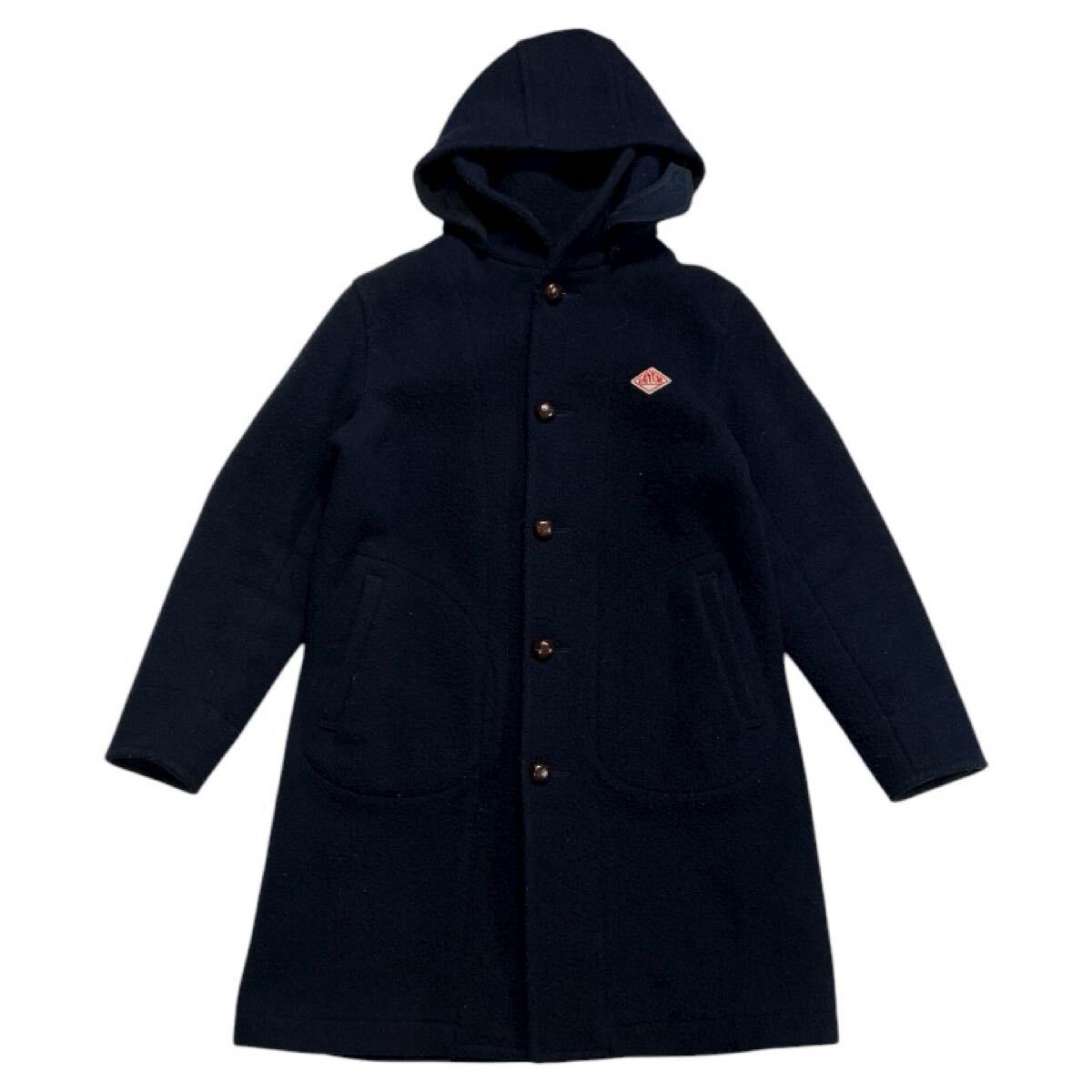 - ■ DANTON ダントン ■ ロゴ 刺繍 ワッペン 着脱可能 フード付 ウール ダッフルコート ネイビー 36