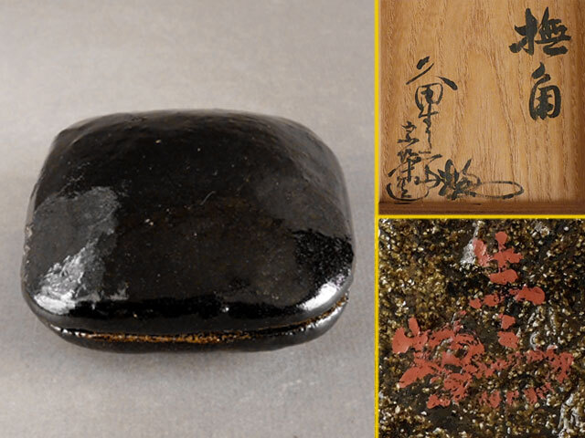 - 表千家 久田 宗栄 手造 黒楽 香合「撫角」