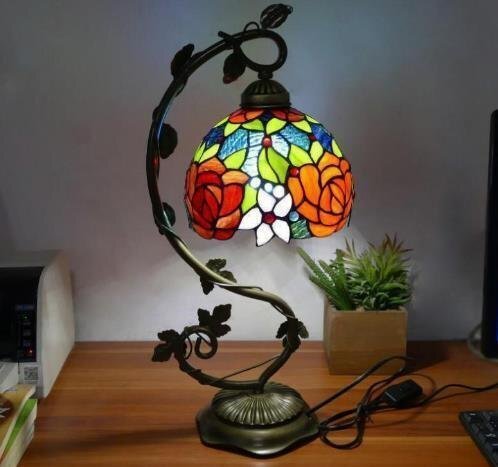 - 美品☆ テーブルランプ デスクライト 花柄 卓上照明 綺麗 ベッドサイドランプ ガラス工芸 豪華 ステンドグラス おしゃれ