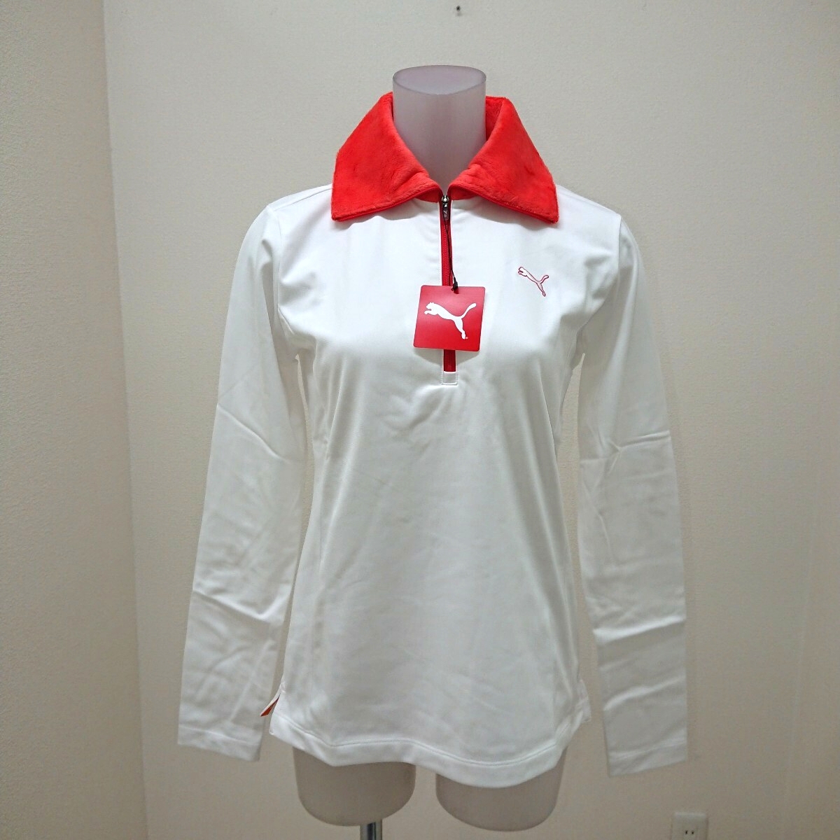- 新品 未使用 タグ付き PUMA GOLF プーマ ゴルフ スポーツ トレーニング ウェア トップス シャツ 長袖 ポロシャツ ハーフジップ 白 赤系 L