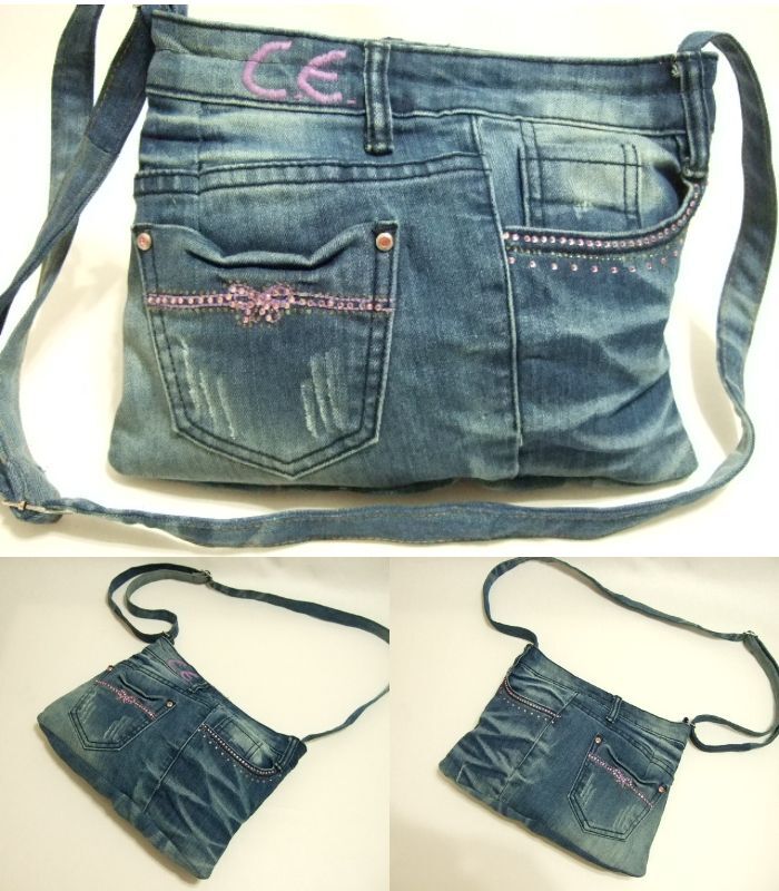 - 横浜最新 魅惑のデニム小型軽量ショルダーバッグ角型♪リメイクオリジナルバッグ 横巾約27cm 縦24cm 送料無料ξblξ ξa4