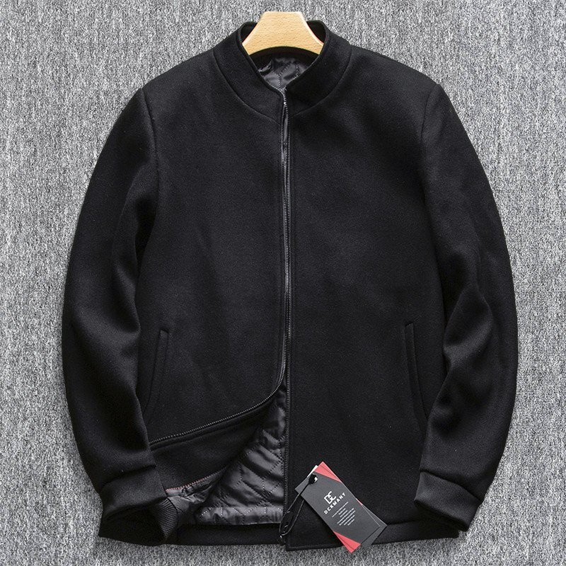 - 新品 DCKMANY ウール混 中綿ジャケット 毛織 防寒 ツイード風 メンズ スタンドカラー アウター 秋冬 厚手 暖かい ビジネス 黒 T9038-3XL