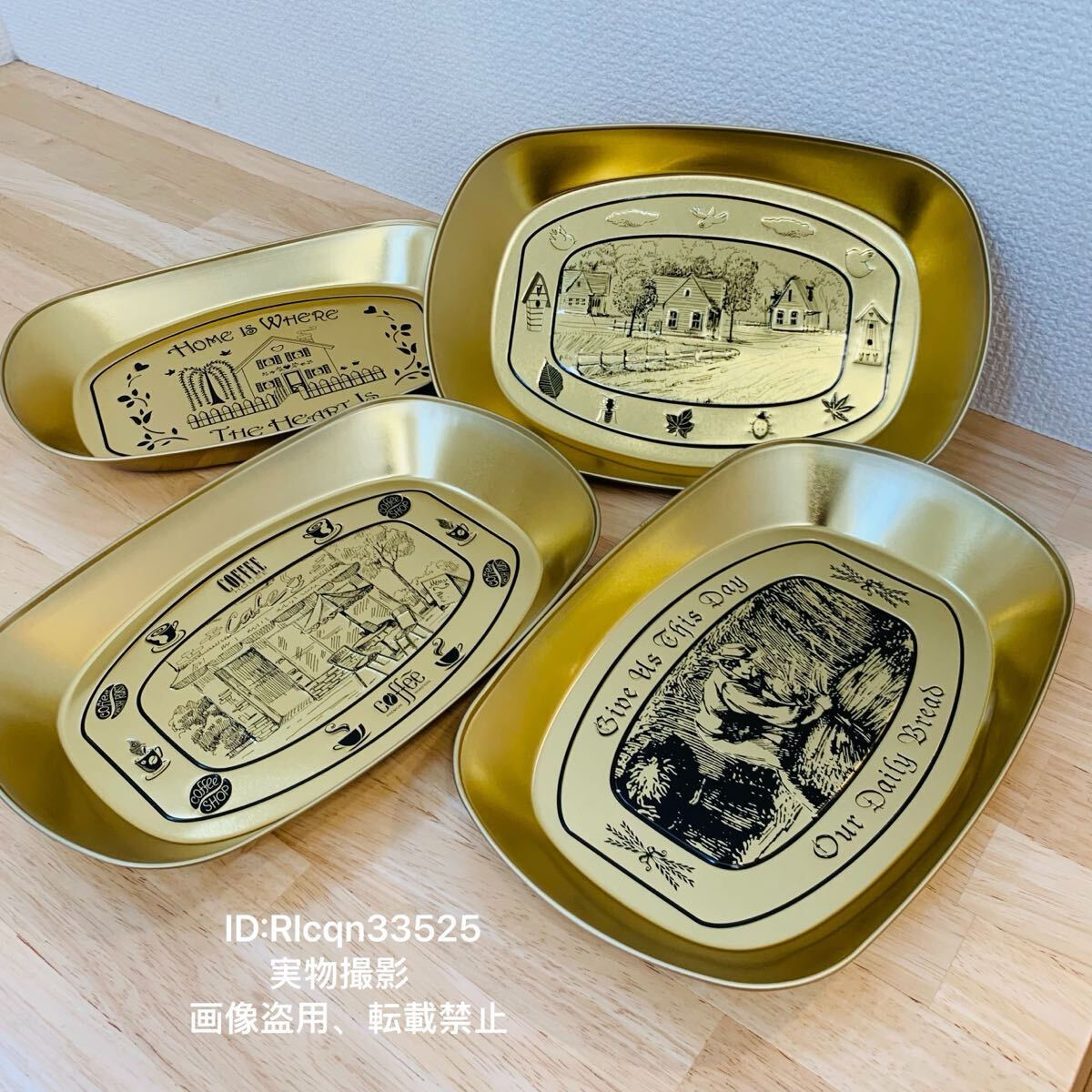- 超激レア 高品質 ゴールド お皿 4点セット アルミ製 アウトドア 野外登山 キャンプ 調理器具 25.5×16×3cm