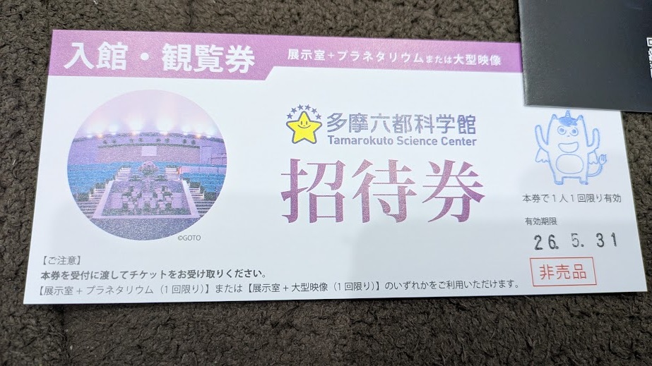 - 多摩六都科学館 招待券 1枚 有効期限2026年5月31日