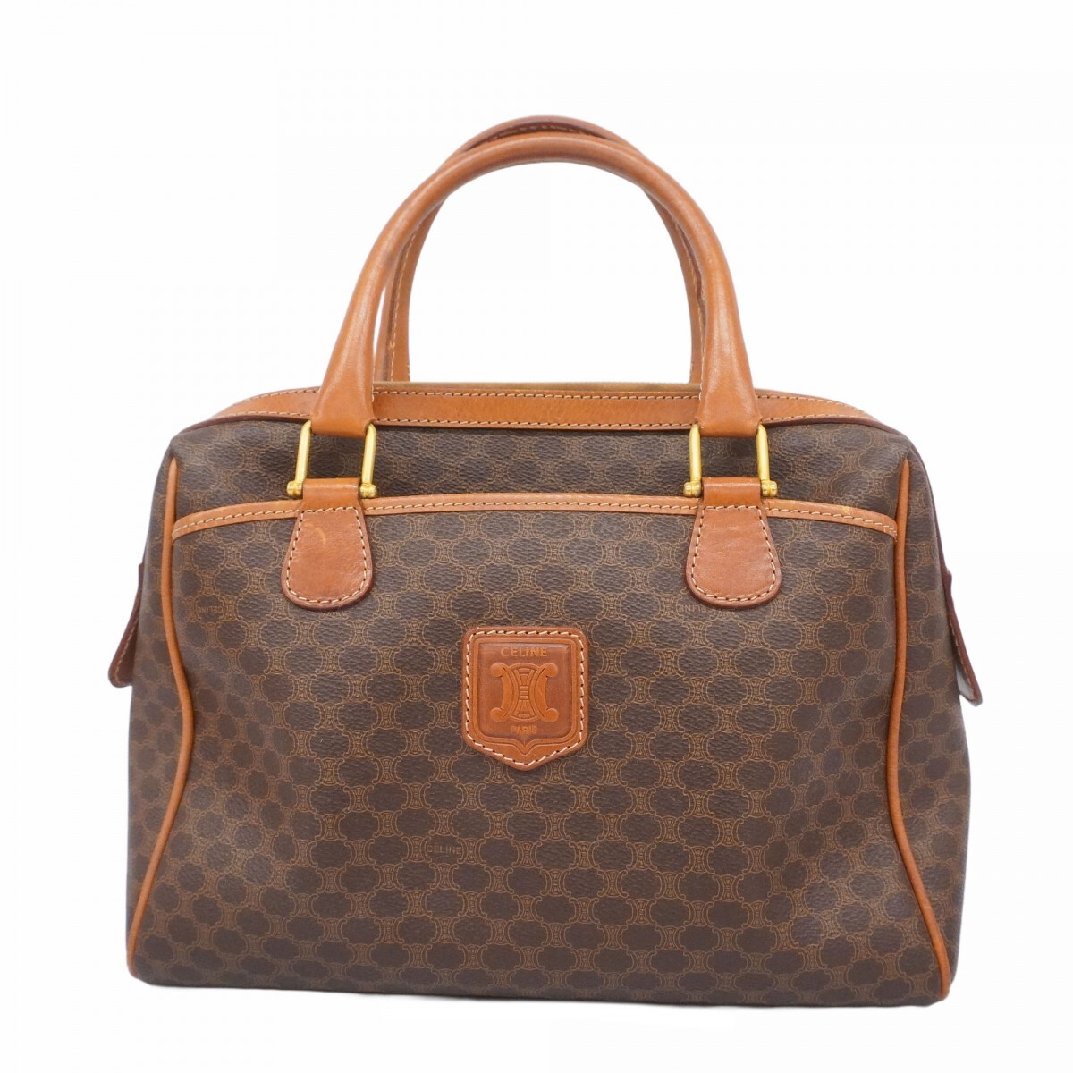 > 【5ob0482】セリーヌ ハンドバッグ マカダム PVC ブラウン ゴールド金具【中古】レディース