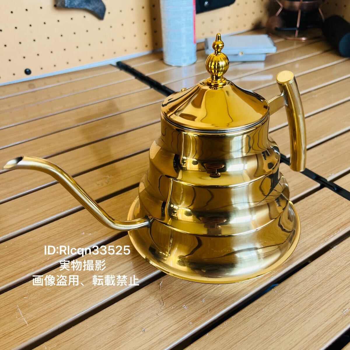 > ゴールドめっき 超高品質 ステンレス製 細口 コーヒーポット 頑丈 キャンプ用 大容量1.2L アウトドア 25x12x19cm