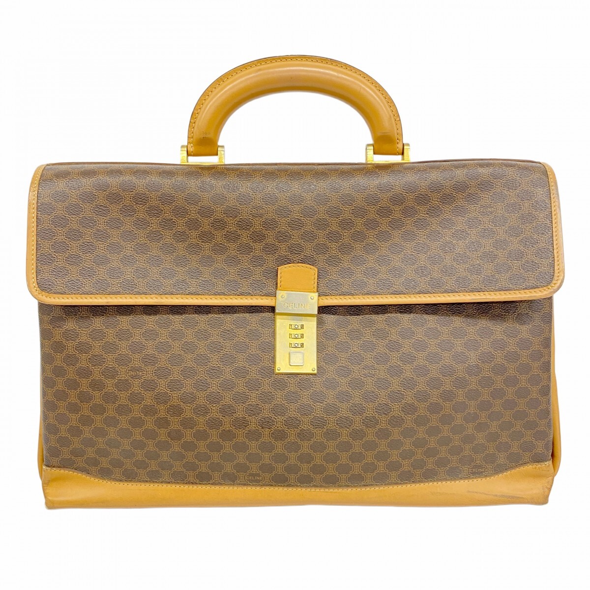 - 【5ob0760】セリーヌ ブリーフケース マカダム PVC ブラウン ゴールド金具【中古】メンズ