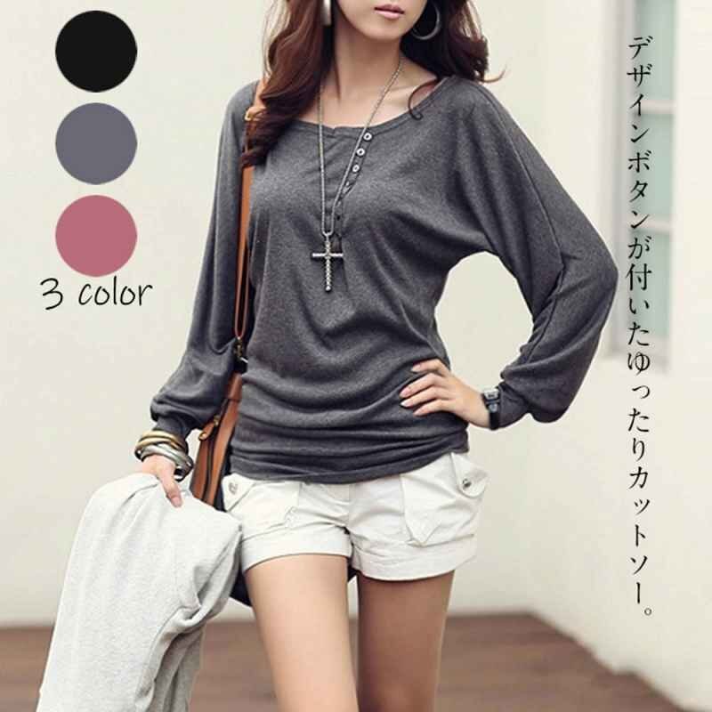 - カットソー レディース チュニック デザインボダン きれいめ カジュアル フリー グレー