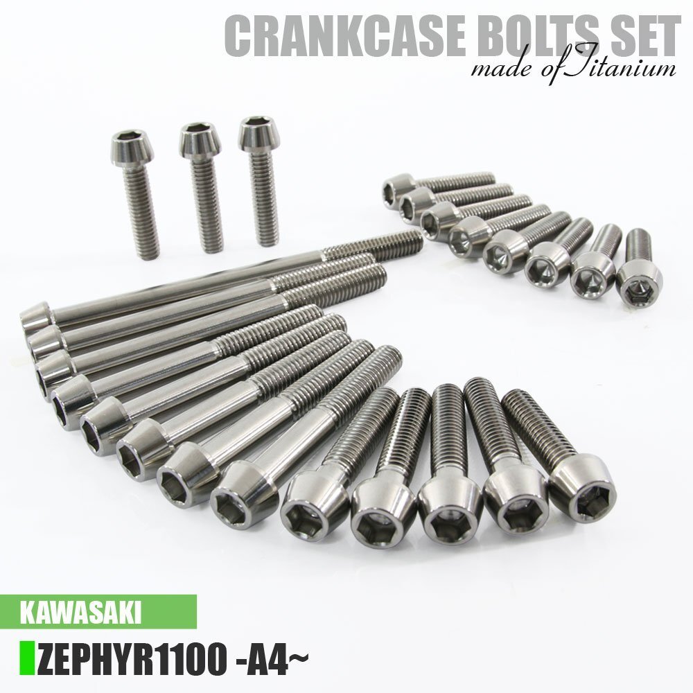 > チタンボルト カワサキ ゼファー1100専用 ZR1100 A4~A10 クランクケース エンジンカバー ボルト セット 24本 シルバー 軽量化 カスタム