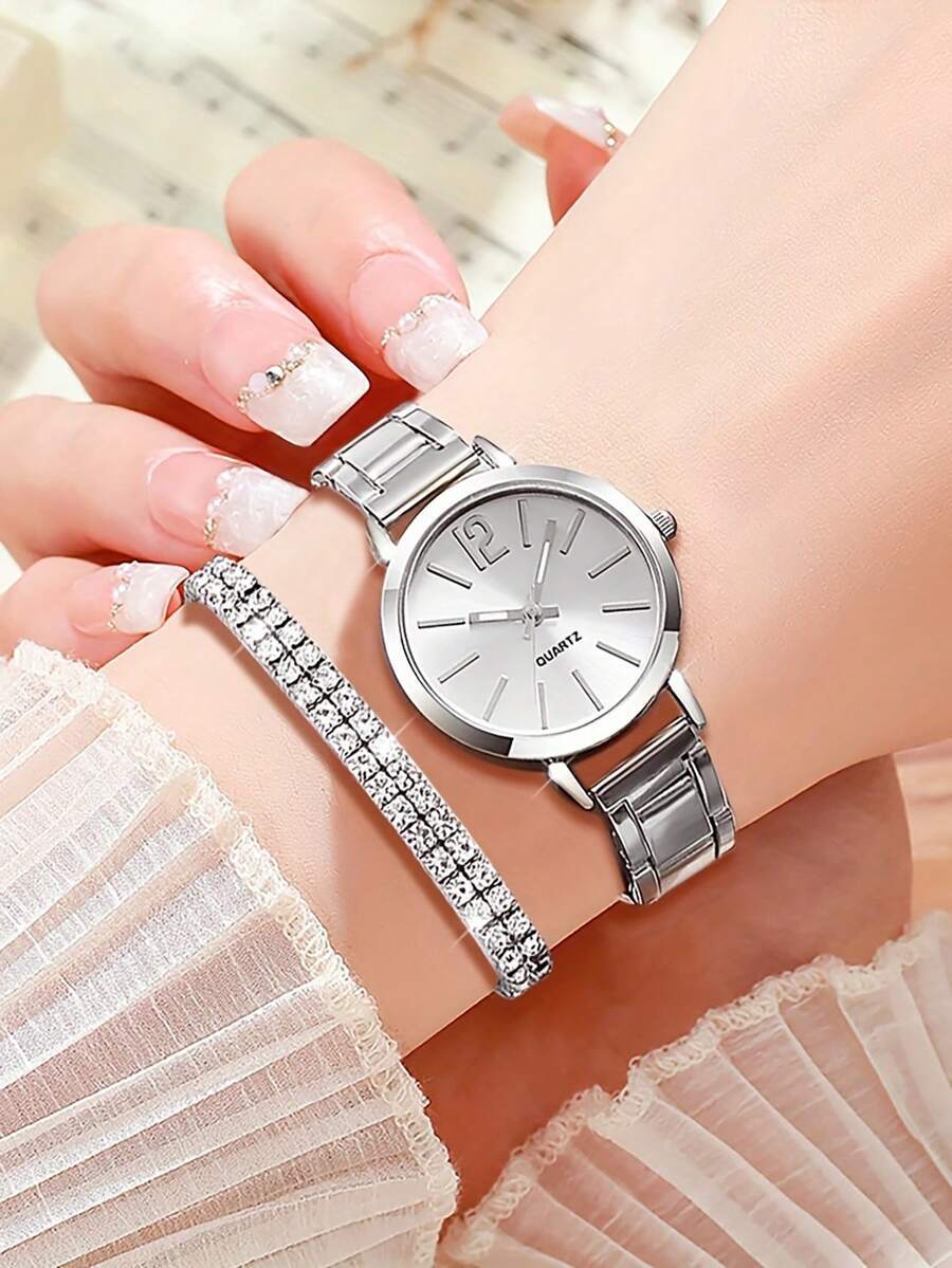 - 腕時計 レディース セット 2個セット ステンレススチール クォーツ腕時計 & ラインストーンブレスレット - バレンタイン、イー
