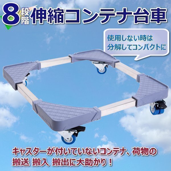 - 新品 アルミ製 コンテナ台車 平台車 4台セット 8段階伸縮可能 搬入 キャリーカー リアカー 運搬機 園芸 アルミ台車 収穫台車 自在