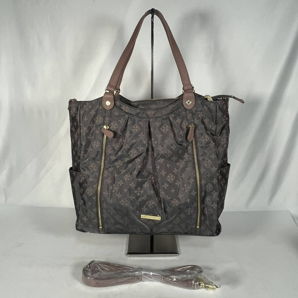 - 未使用品 russet ラシット 2wayバッグ モノグラム柄 ショルダーバッグ ハンドバッグ グレー×ピンク系 T7K0806
