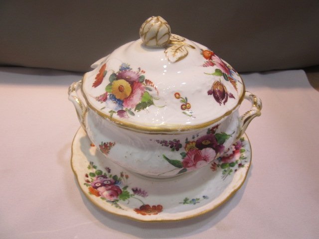 ◆未使用 アンティーク調ポット ハンドペイント ソーサー付き 陶器 年代不明 花柄◆4999拍卖